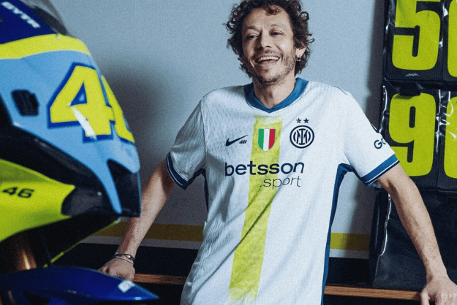 A Inter de Milão, em parceria com a Nike, lançou uma edição especial da camisa reserva para a temporada 2024/25, homenageando o lendário piloto Valentino Rossi em comemoração ao seu 46º aniversário. Este lançamento celebra a paixão de Rossi pelo clube e sua icônica carreira no motociclismo.