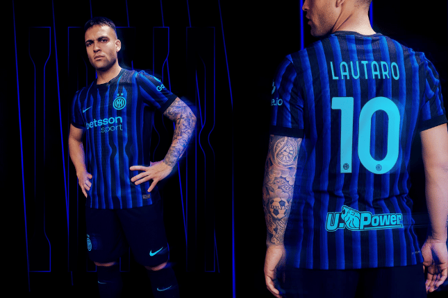 A camisa titular da Inter de Milão para a temporada 2025/26 mantém o clássico azul e preto, mas traz um toque moderno e arrojado. As tradicionais listras verticais agora formam, de maneira sutil e estilizada, a palavra "INTER", como parte do tecido — um detalhe inovador que representa com orgulho a identidade do clube.